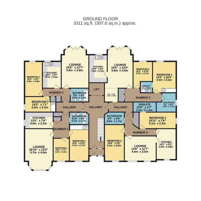 A large development with 16 two-bedroom flats, this property includes units with one or two bathrooms and off-road parking.
